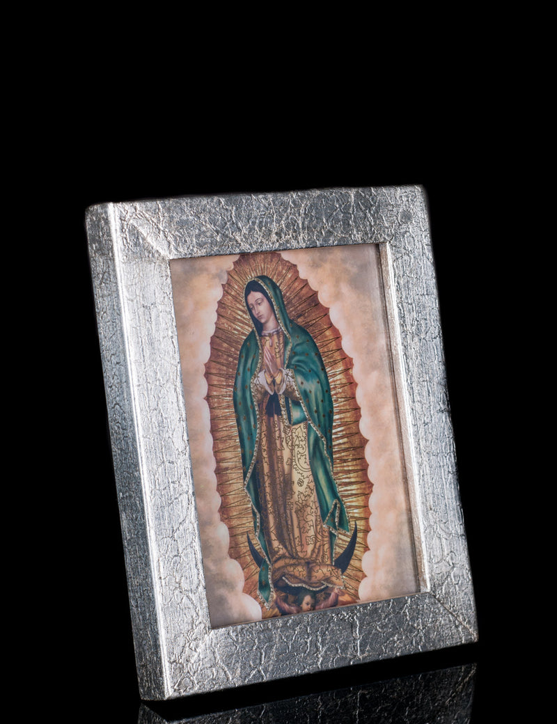 6.2" OUR LADY VIRGIN OF GUADALUPE FULL BODY SILVERED LEAF FRAME